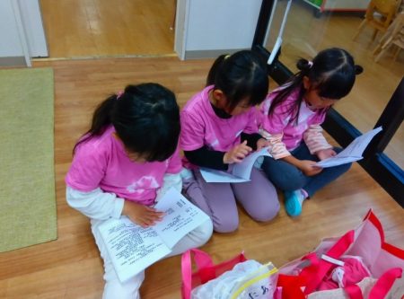 お泊まりのしおりを開いて次の予定の確認を行います。