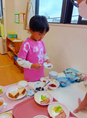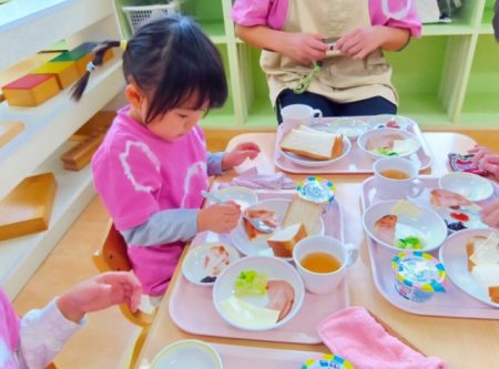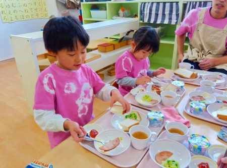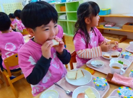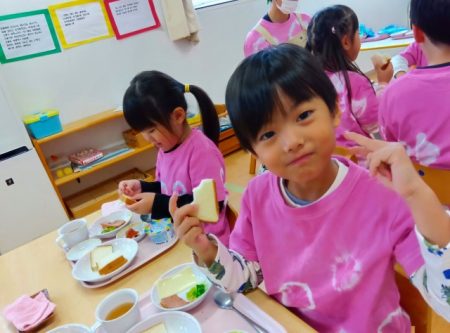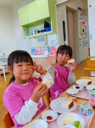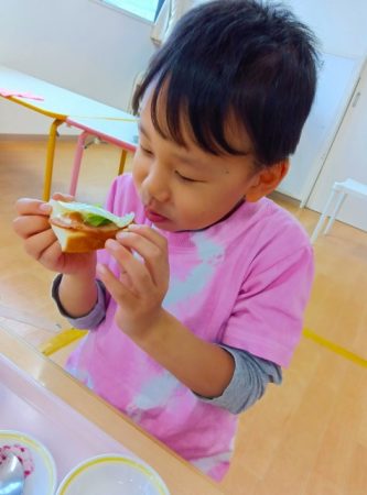 それぞれが好きな具材を挟み、オリジナルサンドを作っていました。