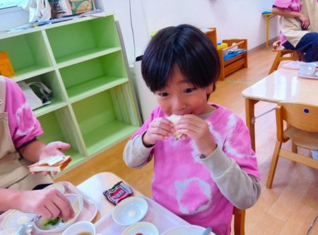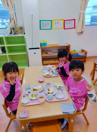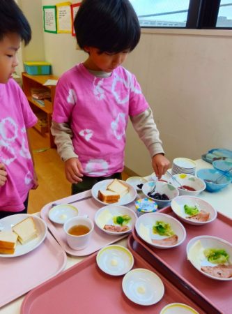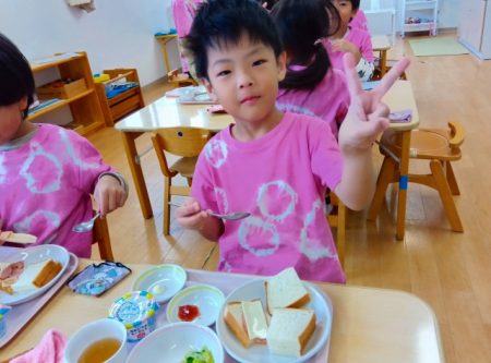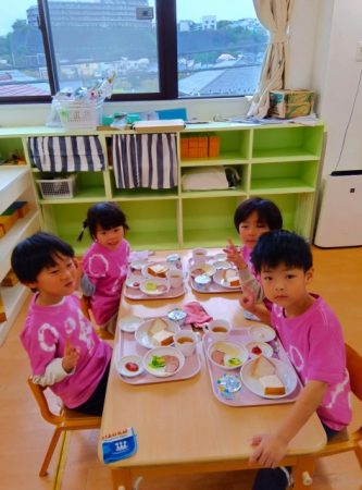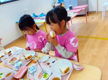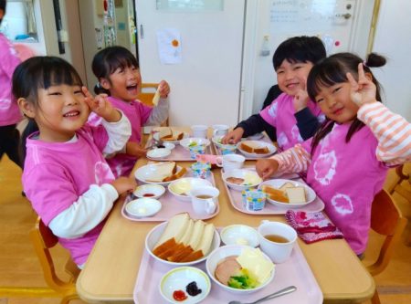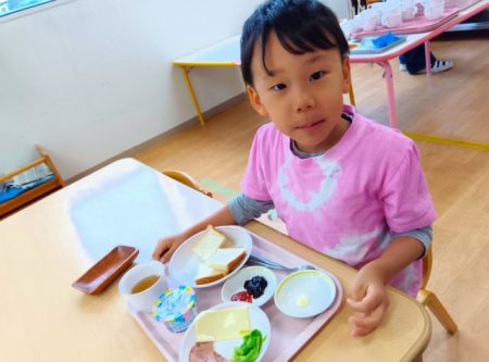 朝が来た!みんなで楽しい朝ごはん♪ 【5歳児たいよう組 ☆お泊まり保育⑥☆】アイン弘明寺保育園