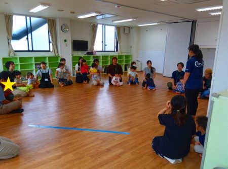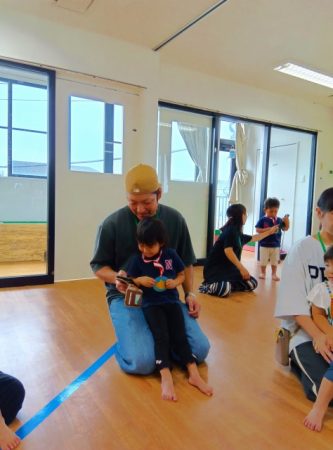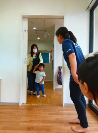 いつもと違うお部屋で少し緊張気味な子どもたち。