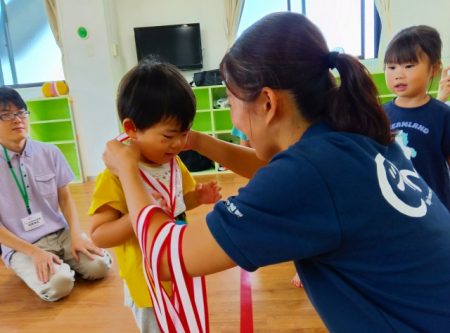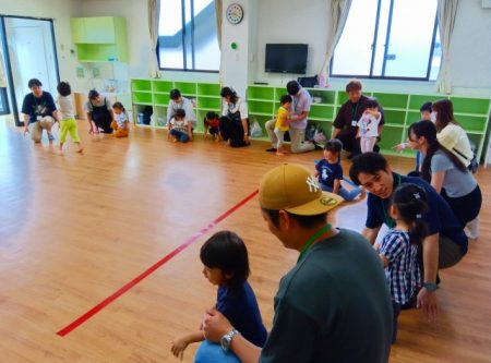 保護者の方も一緒に参加をしてみんなでアキレスケンタウルスという体操をしました。