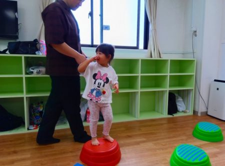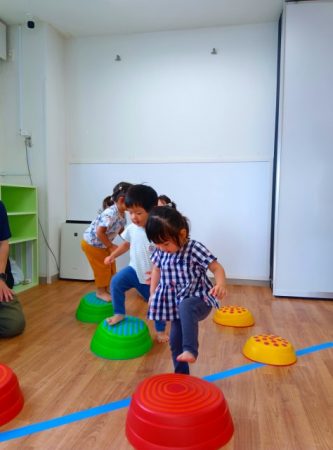 バランスストーンでは遠くまでジャンプしようと挑戦して成功すると嬉しそうな子どもたちでした!