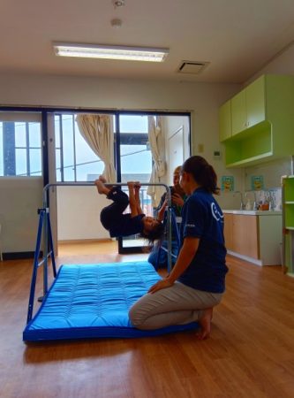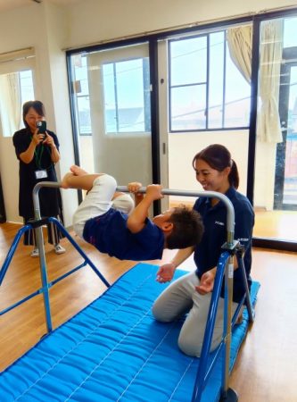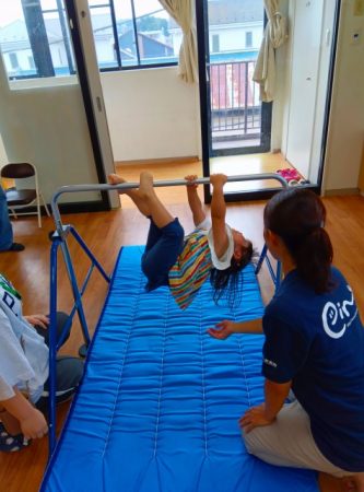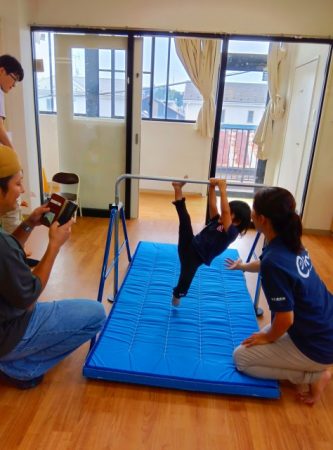 鉄棒では、自分のやりたい技に挑戦したり、得意な技を保護者に見せていました!