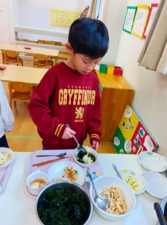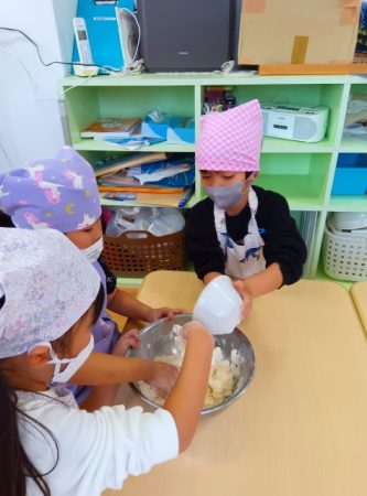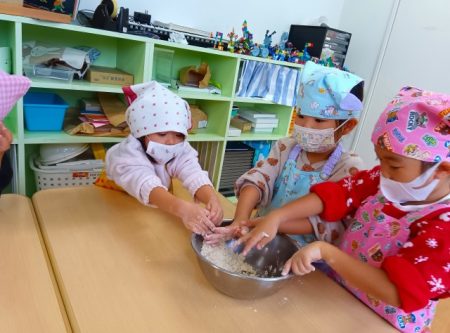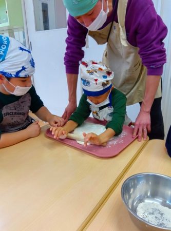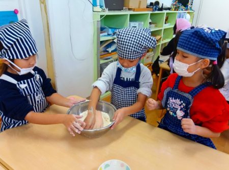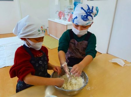 今回は年長たいよう組の12月のクッキングの様子を紹介したいと思います。
