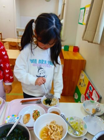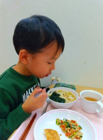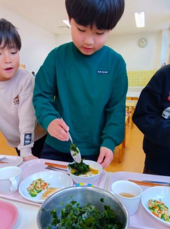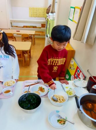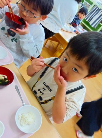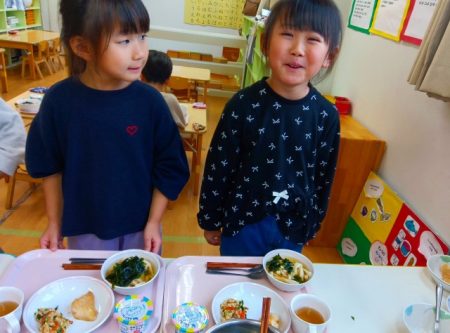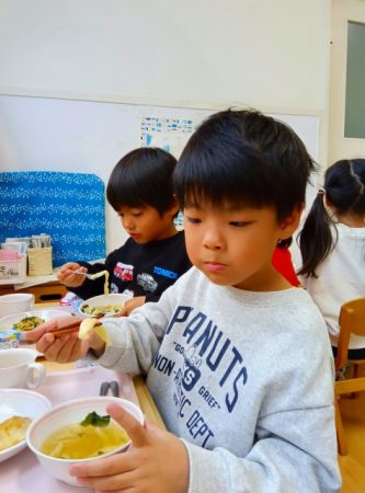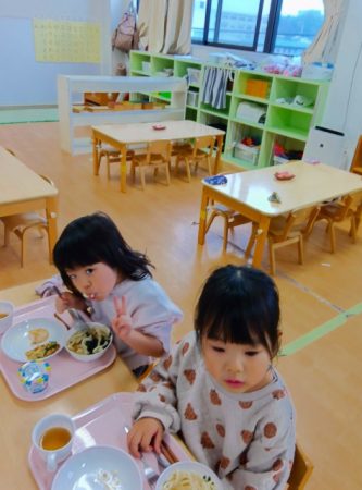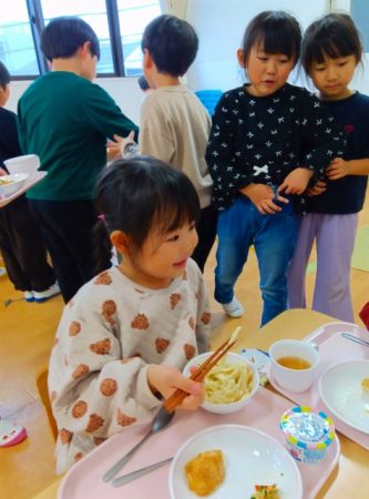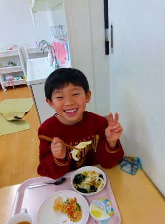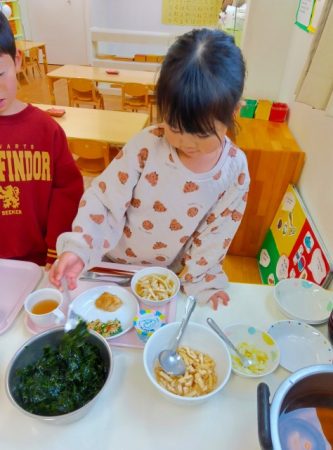 余ったおかわりをさくら組の子にも少しおすそ分け