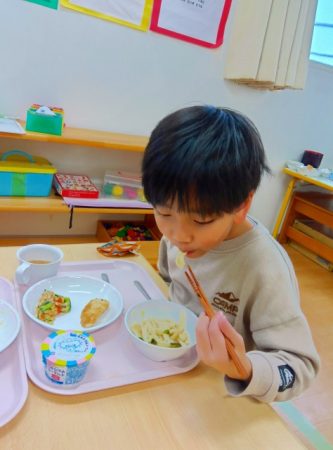 太かったり、もちもちだったりいつもとはすこし違いましたが、自分たちだけで作ったうどんに終始満足そうなたいよう組でした。