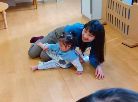 保護者の方から離れて保育士のところまで来てくれる姿がありました。