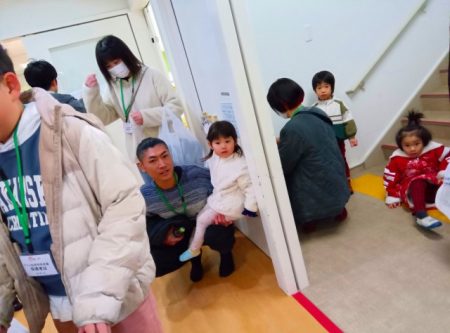 パパやママを見つけて笑顔な子、緊張して顔を隠す子、様々な姿がありましたが頑張っていました!