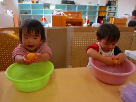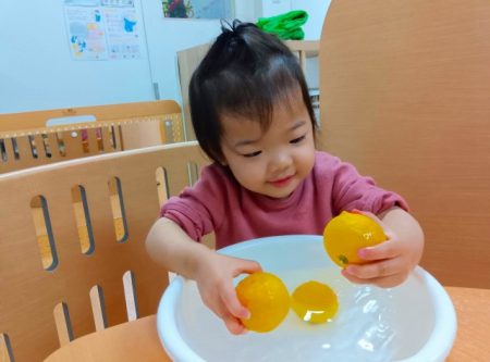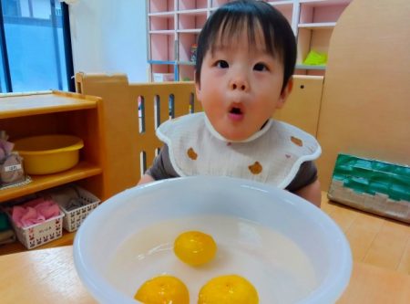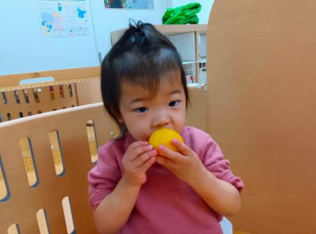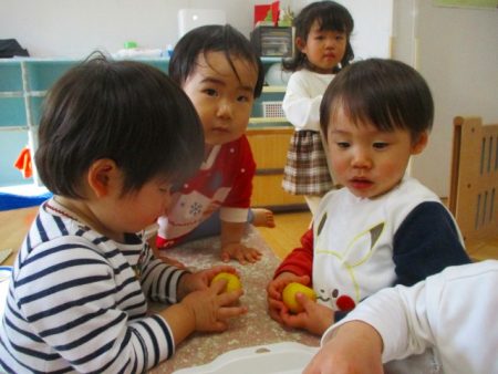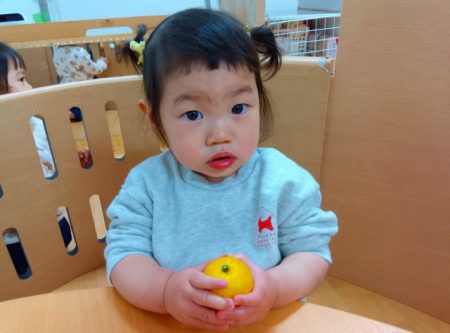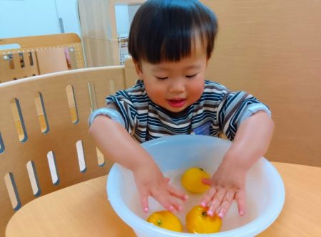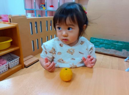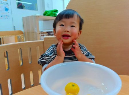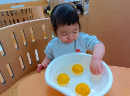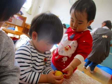 冬至でゆずにふれて…【0,1歳児】アイン弘明寺保育園