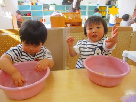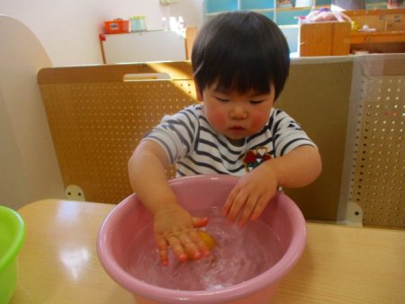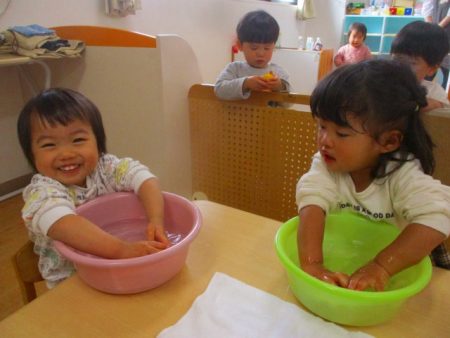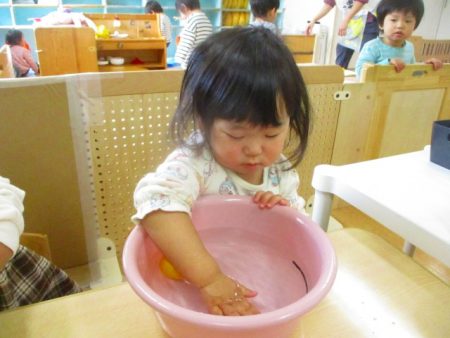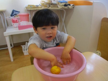 水面のゆずをつかまえてみたり、お友だちと「あったか~い♡」と顔を見合わせたりして、ほっこりしていた子どもたちでした。