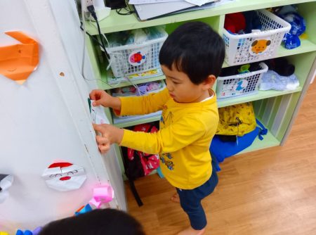 自分の身体だけではなくお友だちの手や頭ともくっつきました。