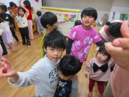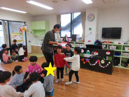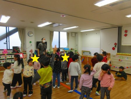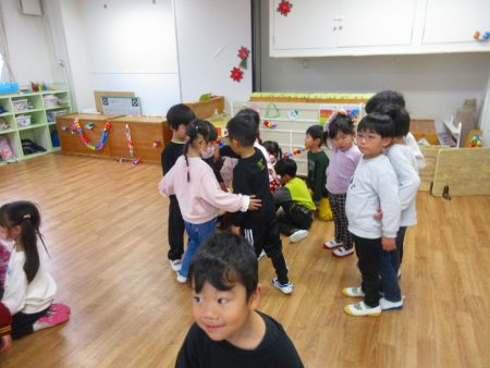 「くっついたくっついた なーにがくっついた!」とみんなで元気に掛け声をします。