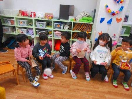 少し難しかったわかば組もたいよう組、さくら組のお友だちが大きな声で数を言って教えてくれたことで楽しむことが出来ていました。