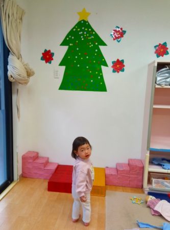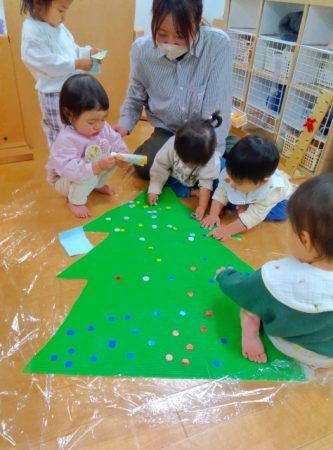 みんな真剣に取り組んでいました。みんなで作ったクリスマスツリー、とってもかわいく出来上がりました。