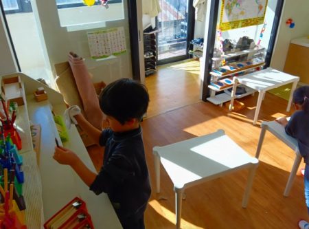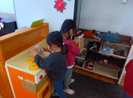 玩具や棚、机やいすなど毎日使っているものを掃除しました。