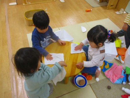 さて、お昼寝から起きておやつも食べて…もうすぐお迎えの時間になる子も。
