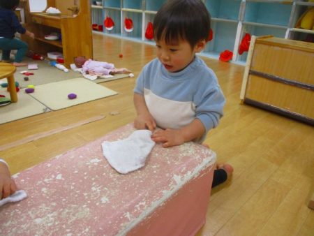 おそうじふきふき…きれいになったかな?【1歳児ふたば組】アイン弘明寺保育園