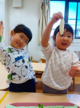 七草の日までに階段の掲示などで七草という名前は知っていた子どもたち。