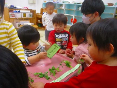 みんな興味を持って実際に触れて、においを嗅いで七草を感じていました。