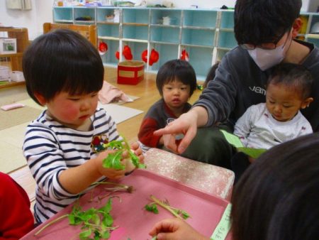 初めて見る七草に興味を示していました。