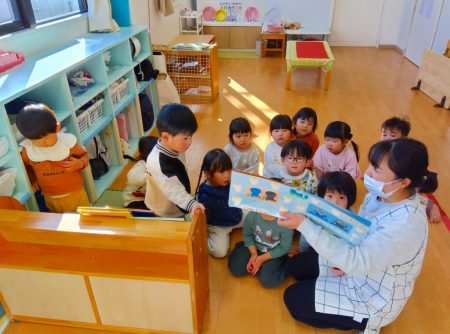 はじめに絵本を読んで、鏡開きの説明をしました。