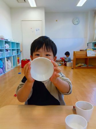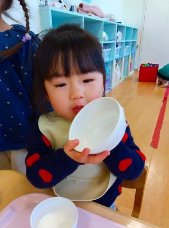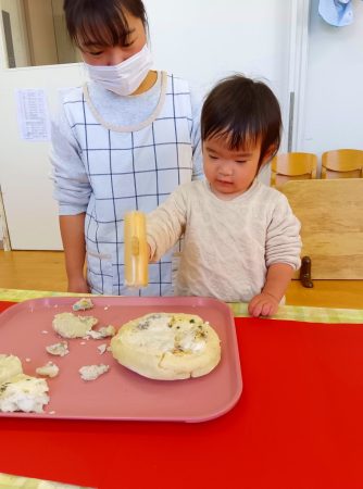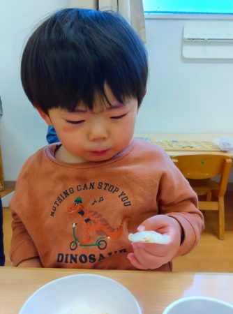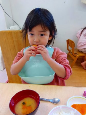 「美味しい」や「パリパリしている」とお話しながら美味しそうに食べていました。