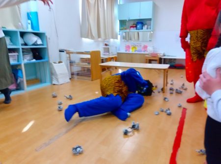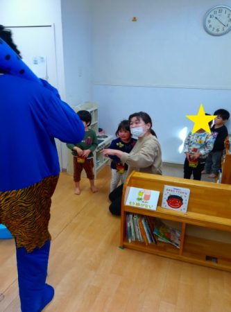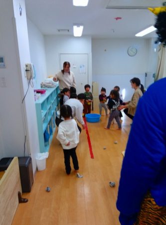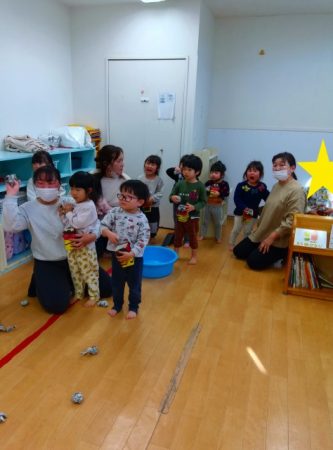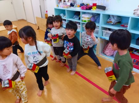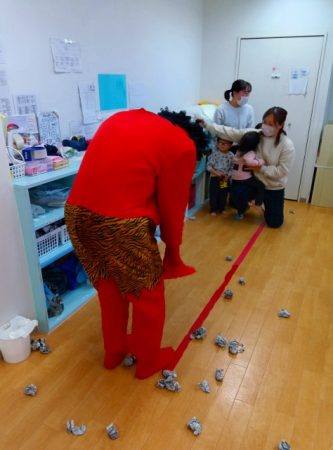 「おにはそと♪ ふくはうち♪」と歌のリズムに乗って踊る姿も見られました。