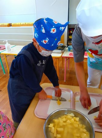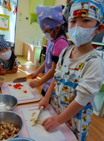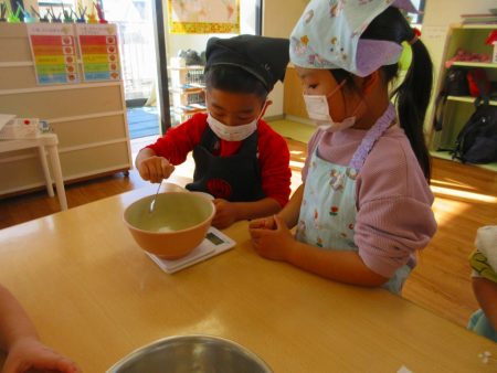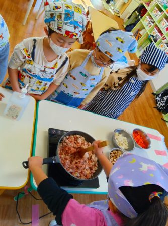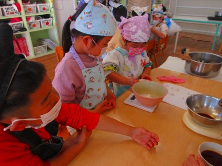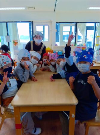 クッキング開始前から「早く作りたーい」とワクワクしていた子ども達です。