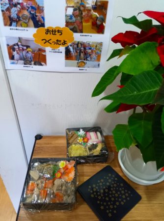 作ったおせちは給食に幼児みんなで食べました。
