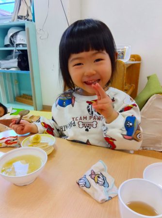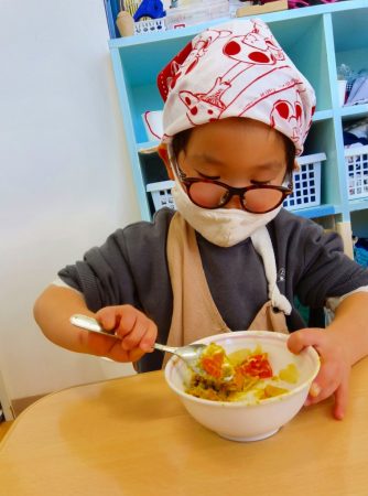 「自分で作ったから美味しいね」と言いながら嬉しそうに食べていました