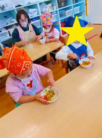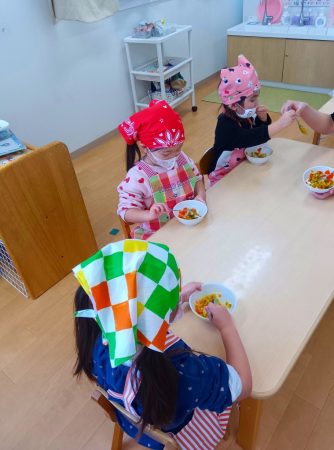 今回はつぼみ組のクッキングの様子をお伝えしたいと思います。