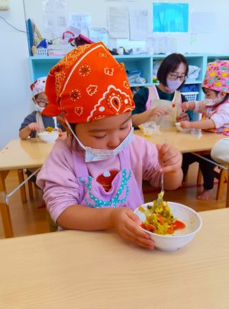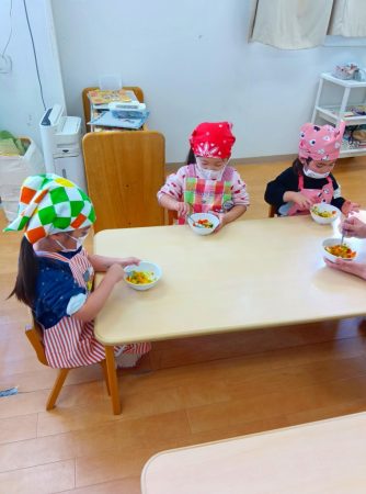 自分で作って食べる経験ができて子どもたちも嬉しそうに参加して食べていました。