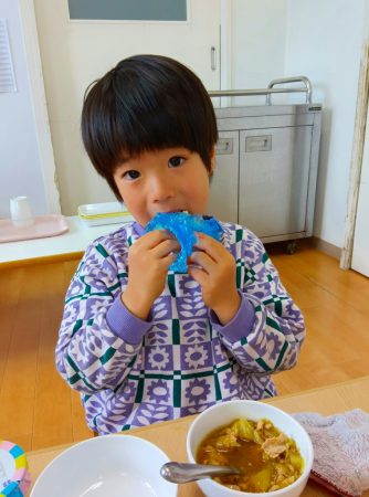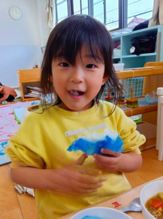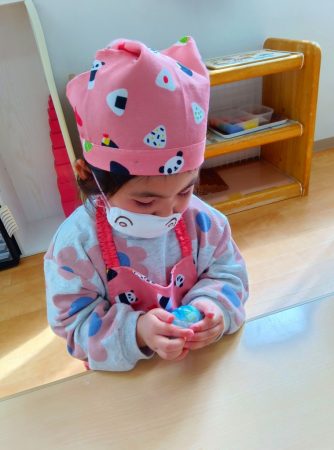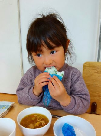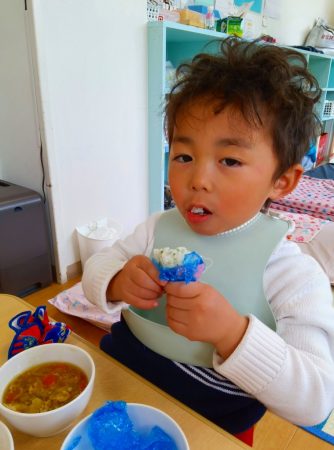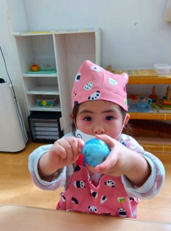 完成すると嬉しそうに「できた!」と言っておにぎりを見せてくれました。