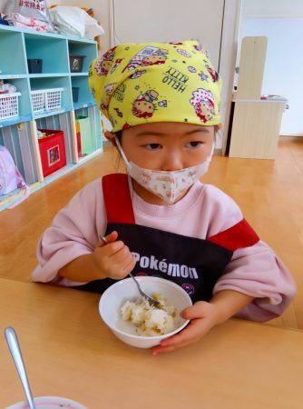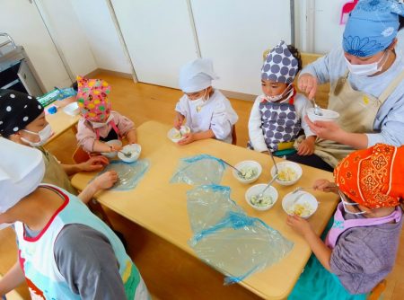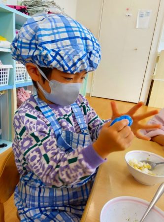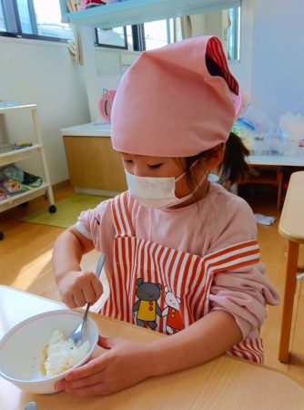 今回はつぼみ組のクッキングの様子をお伝えしたいと思います。