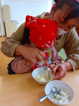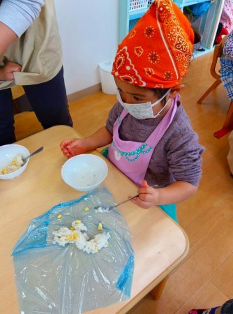 おにぎり作り♪【2歳児 つぼみ組】アイン弘明寺保育園