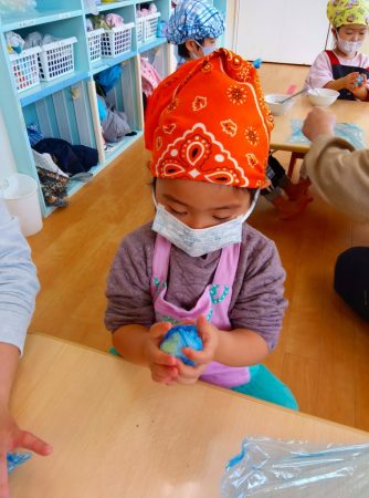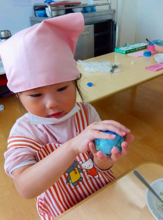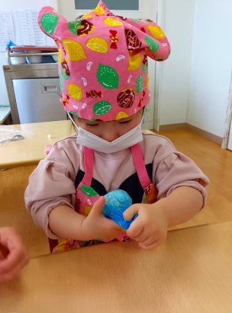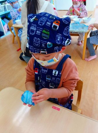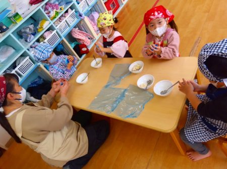 「にぎにぎ」や「美味しくなあれ」と言って夢中に握っていました。