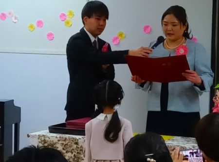 歌が終わり、保護者代表者からの謝辞を頂きました。
