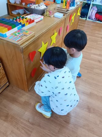まずは、会場準備。星とハートで飾りつけです。