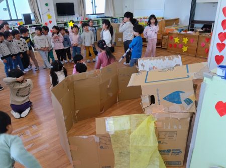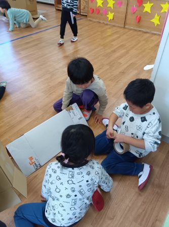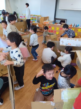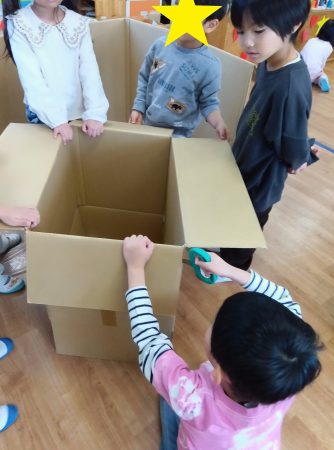 段ボールはたいよう組さんに切ってもらいました。