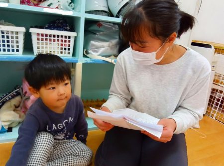 絵本を読み終えてから保護者からの誕生日メッセージを読みました。