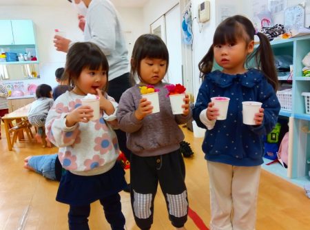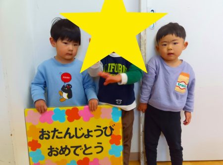 わかば組の1名、さくら組の2名のお友だちが誕生日を迎えました。