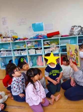絵本を読んだり、「♪うれしいひなまつり」を歌ったり…絵本はどうぶつたちが手作りのおひなさまを作る内容でしたが、みんなが作ったおひなさまも園内に飾ってありますね。