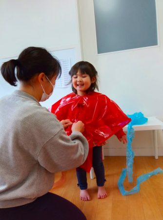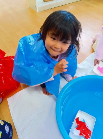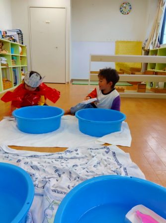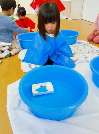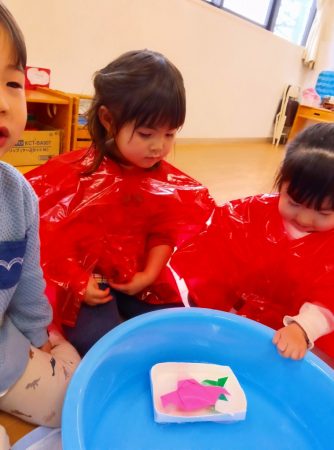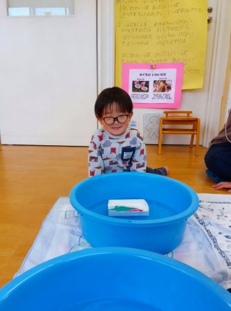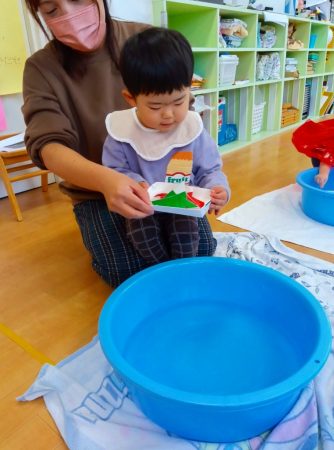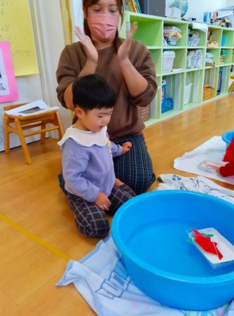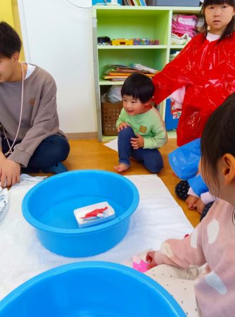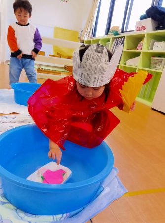 幼児クラスのお部屋へ行き、流し雛をしました。