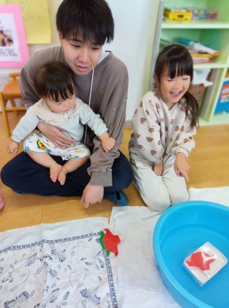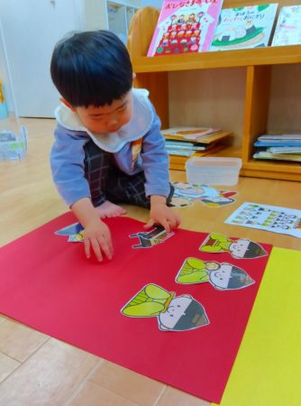 今回は乳児クラスのひなまつりの行事の様子をお伝えしていきたいと思います。