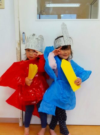 なりきりグッズをつけて園内散歩に行く子もいましたよ。