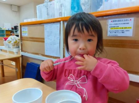 給食はちらし寿司、おやつは苺のケーキでの見た目にもかわいいメニューで、1日を通してひなまつりの雰囲気を楽しみました!