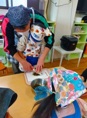 その後は手作りふりかけおにぎりの材料を分担して作ります。