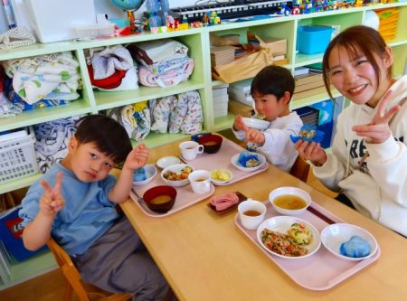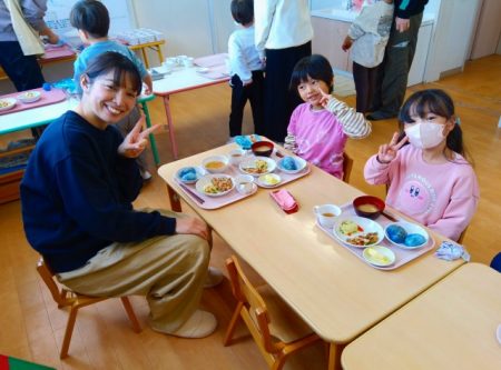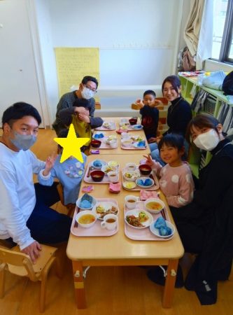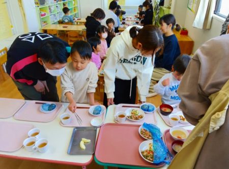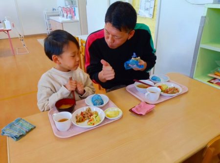 保護者の方と一緒に食べる特別感に子どもたちはいつも以上に食が進んでいました。