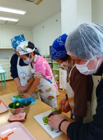 今回は先月行なった幼児クラス にじグループの親子クッキングの様子を紹介します。