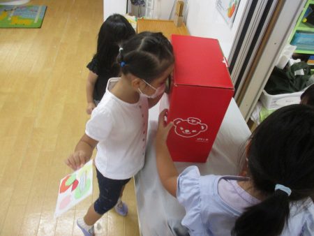お盆をすぎたら「残暑おみまい」になりますね。お家の方にカードを渡している友だちもいます。
